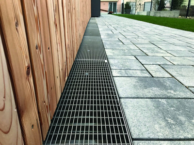 Die ACO Sockelrinne dient in erster Linie dazu einen barrierefreien Übergang gemäß DIN 68800-2 "Holzschutz – Vorbeugende bauliche Maßnahmen im Hochbau" zu realisieren. Holz im Bauwesen bedarf eines dauerhaften Schutzes. Bei einem Austrittbereich mit der ACO Sockelrinne wird der (trockenen) Sockel vom (feuchten) Erdreich getrennt. Zudem wird das von der Fassade ablaufende Niederschlagswasser aufgenommen und somit auch die Drainung ergänzt.
