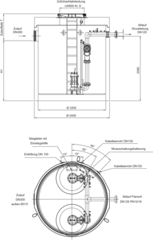 - Teilweise mit Kabelleerrohr und Entlüftungsanschluss DN 100/OD 110, (Montage der lose gelieferten Bauteile bauseits)