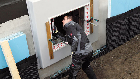 Mit der Montageplatte ACO Therm® Block wird die Lichtschachtmontage auf Dämmung ganz einfach. Sparen Sie Kosten und Zeit: das Anarbeiten der Perimeterdämmung wird erheblich vereinfacht, das Verputzen und Streichen entfällt, da der Kellerlichtschacht direkt auf der Montageplatte montiert werden kann – bohrlos und wärmebrückenfrei. Der Therm® Block ist technisch optimal abgestimmt auf ACO Lichtschächte und ACO Kellerfenster und erhältlich für die Standardmontage sowie die druckwasserdichte Lichtschachtmontage.