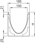 - Rinnenkörper mit LLD-Rohranschluss haben eine 10 mm größere Bodenstärke als die anschließbaren Rinnenkörper (Beispiel):
