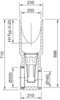 - Anschluss DN/OD 200 mit Muffenstopfen verschlossen