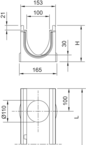 - *) Rinnenkörper mit LLD-Rohranschluss haben eine 5 mm größere Bodenstärke als die anschließenden Rinnenkörper