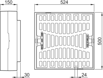 - Umlaufend geschlossener Rahmen mit ausschlagbarer Bauzeitentwässerung