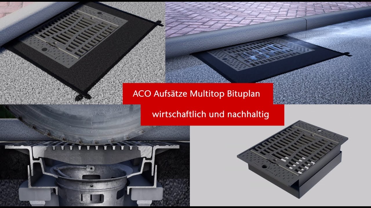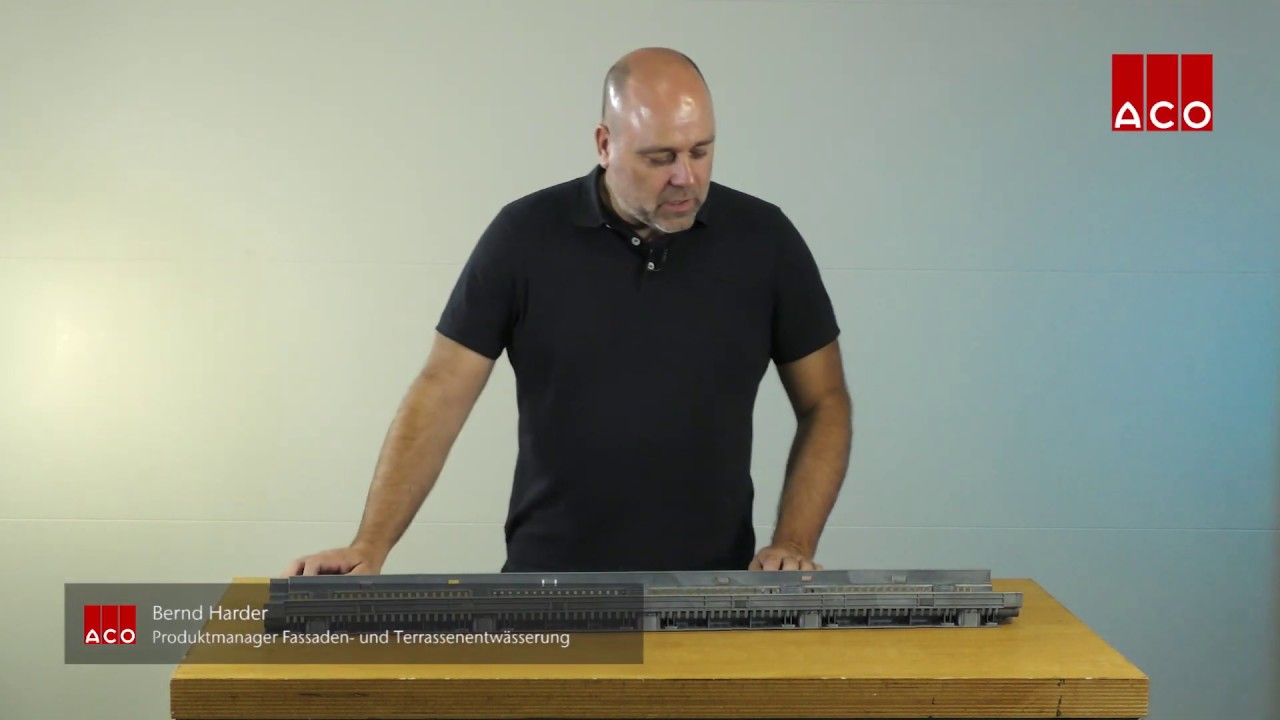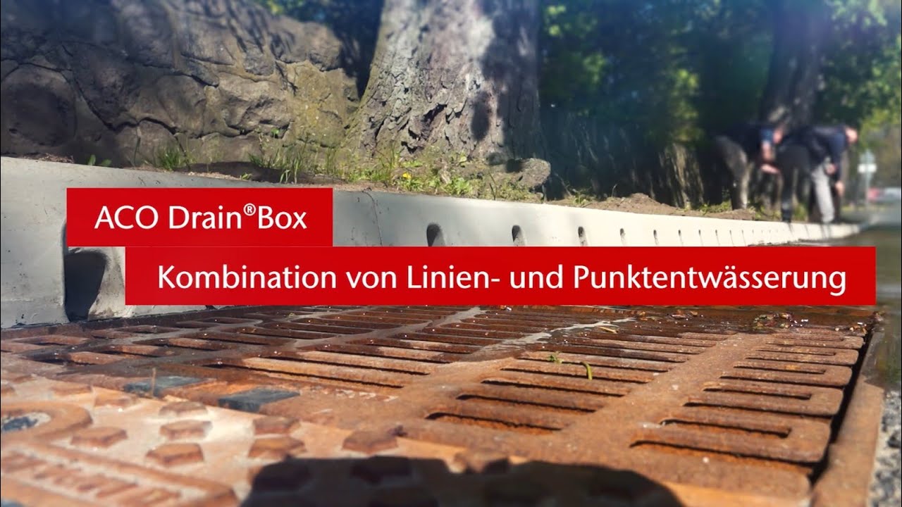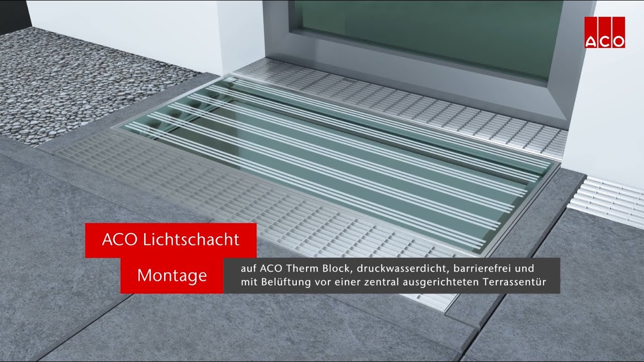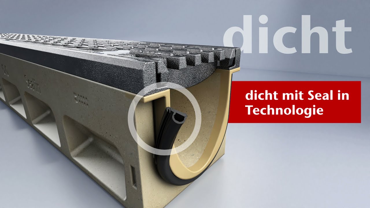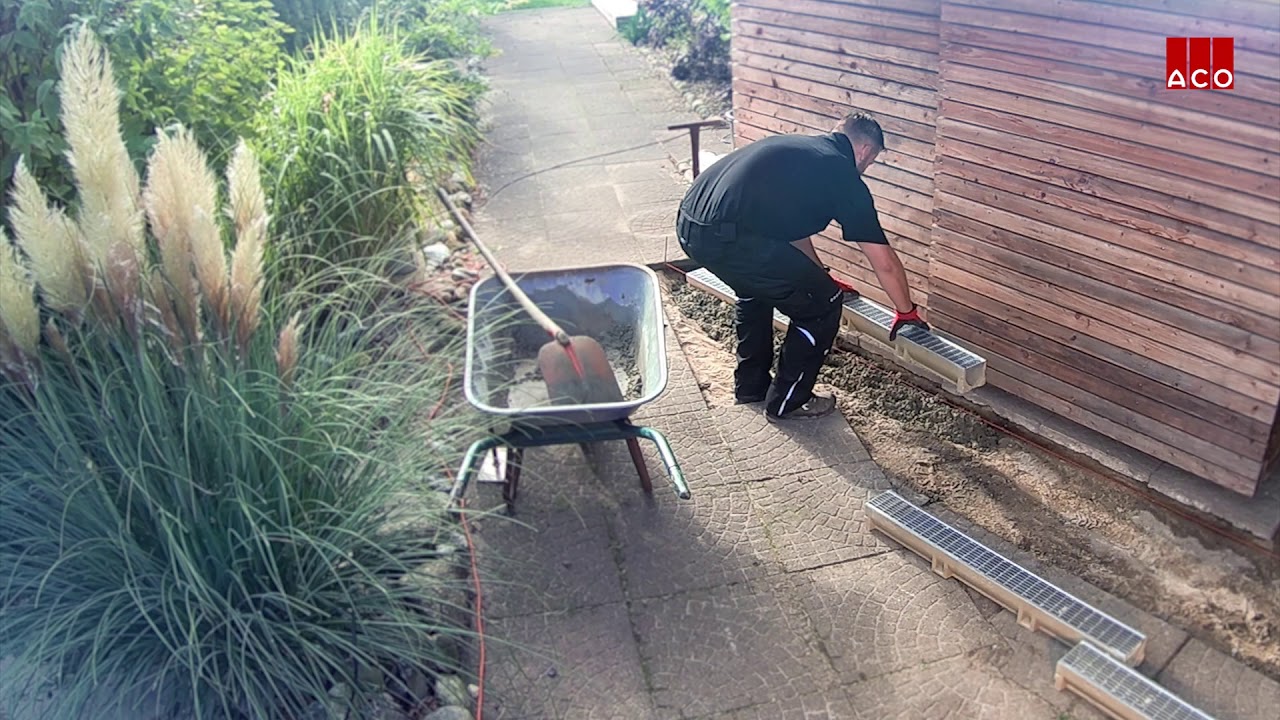 Erfahren Sie mehr zur Funktionsweise: Sehen Sie, wie das Oberflächenwasser von der ACO DRAIN® Monoblock Rinne aufgenommen und in den 3-Kammer-Tauchwandschacht fließt. Innerhalb des Systems gelangt das Wasser in den Schlammfang, wo sich die Sedimente ablagern können, dann über die Tauchwand, um anschließend gereinigt von Grobstoffen in die Rohrleitung abzuleiten.
