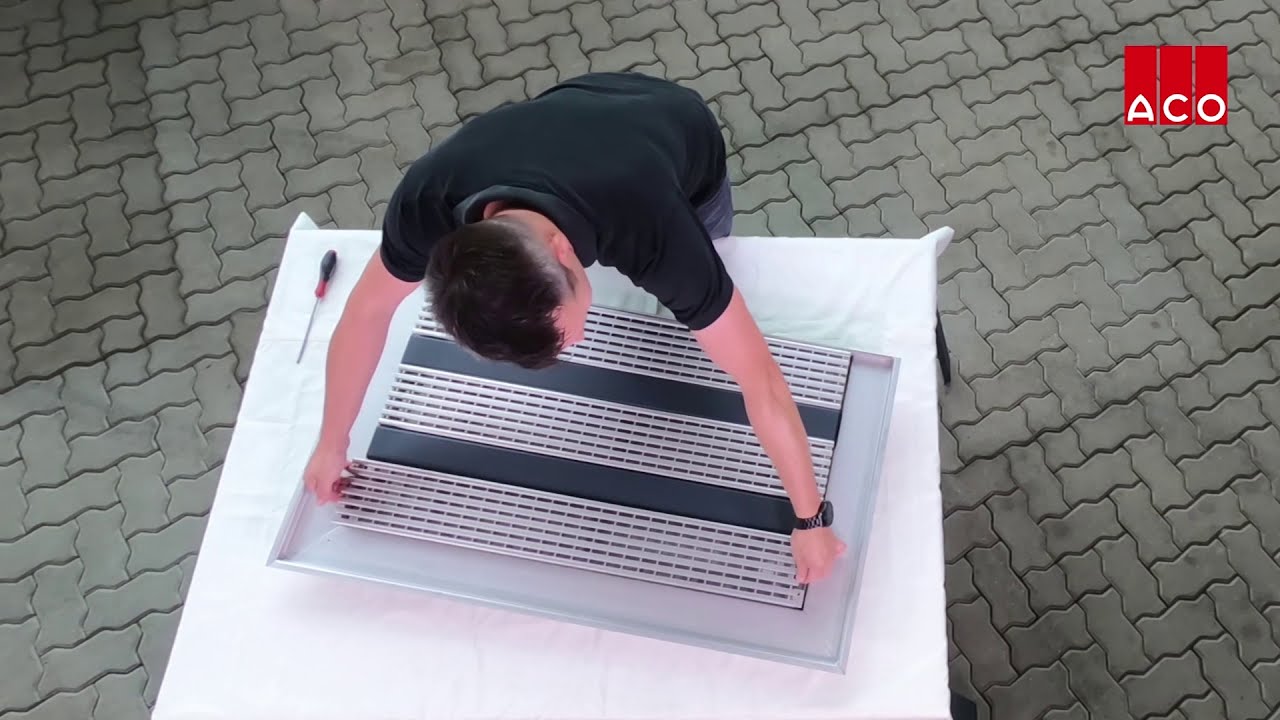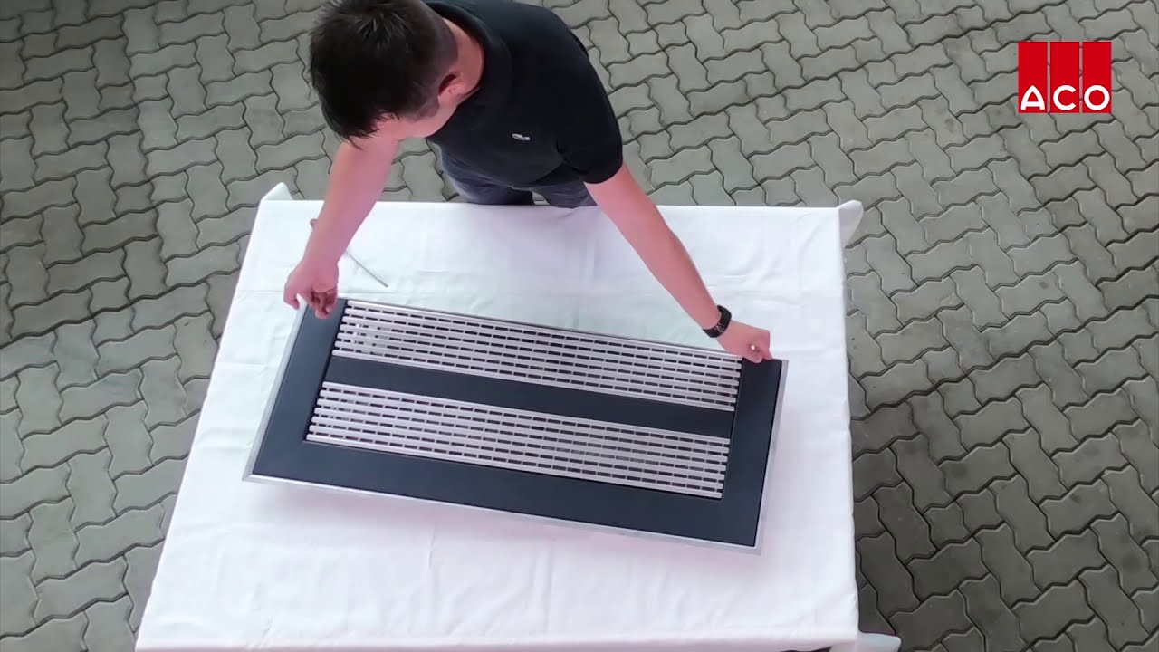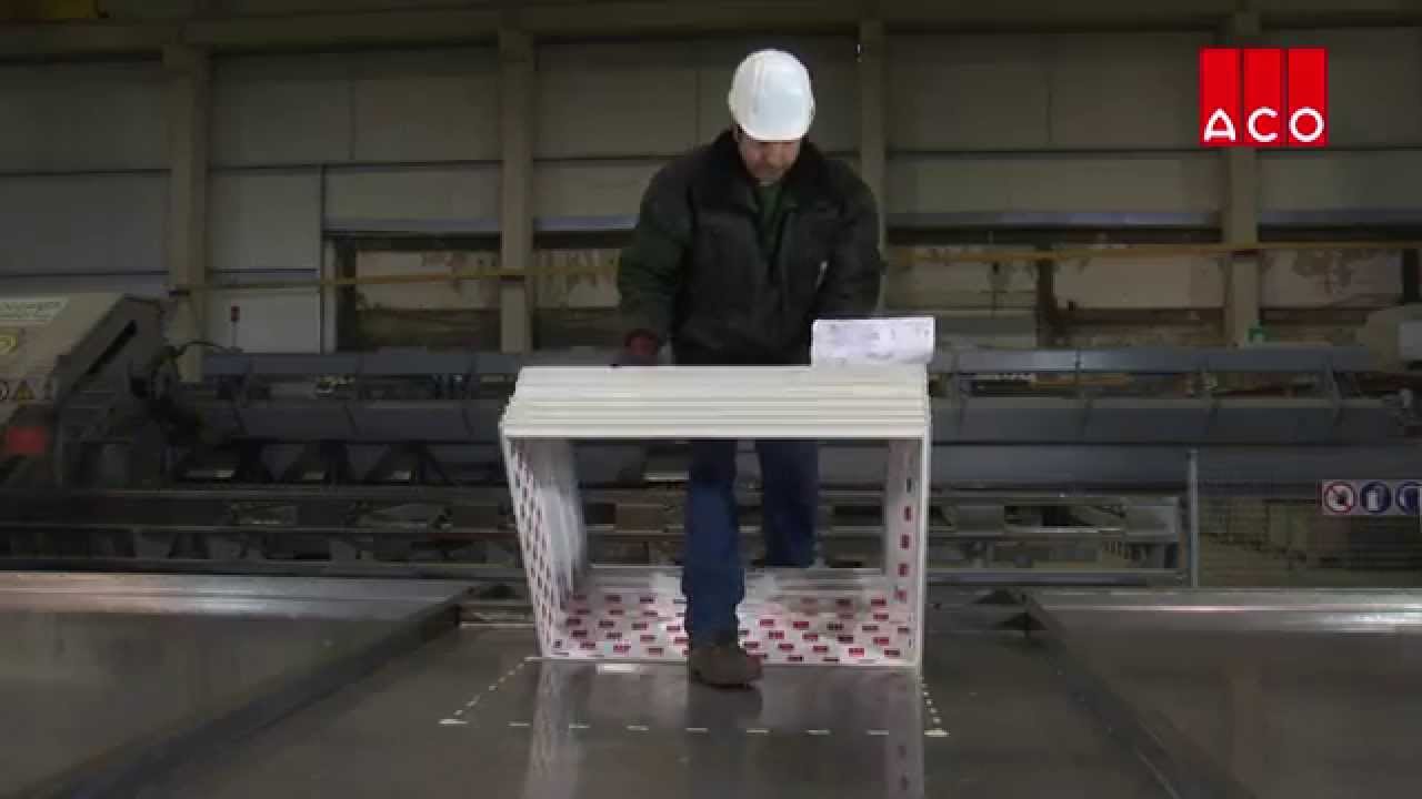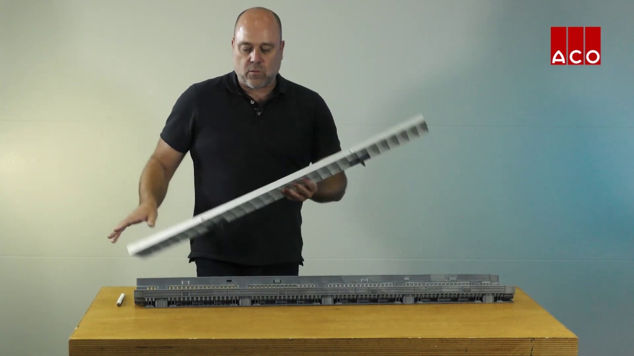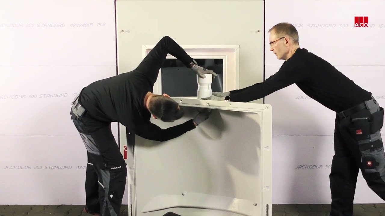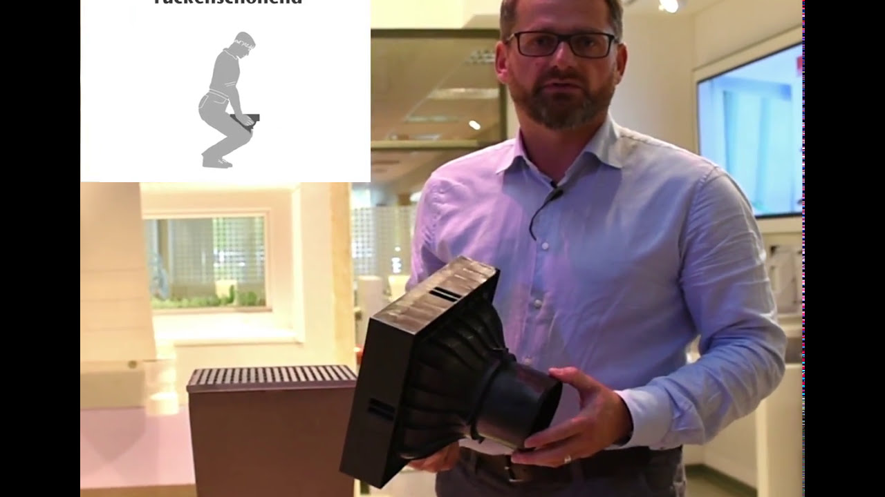 Erfahren Sie mehr zur Funktionsweise: Sehen Sie, wie das Oberflächenwasser von der ACO DRAIN® Monoblock Rinne aufgenommen und in den 3-Kammer-Tauchwandschacht fließt. Innerhalb des Systems gelangt das Wasser in den Schlammfang, wo sich die Sedimente ablagern können, dann über die Tauchwand, um anschließend gereinigt von Grobstoffen in die Rohrleitung abzuleiten.