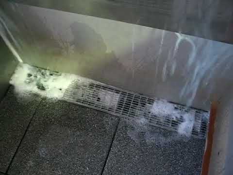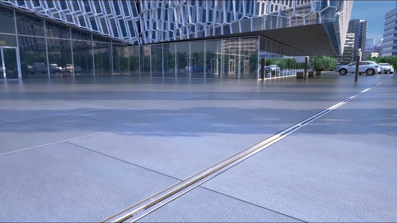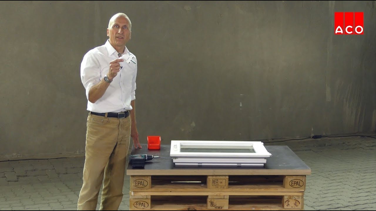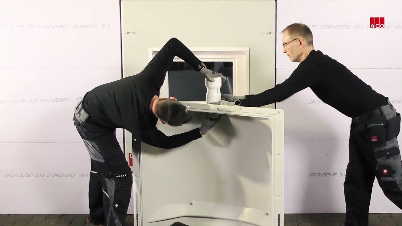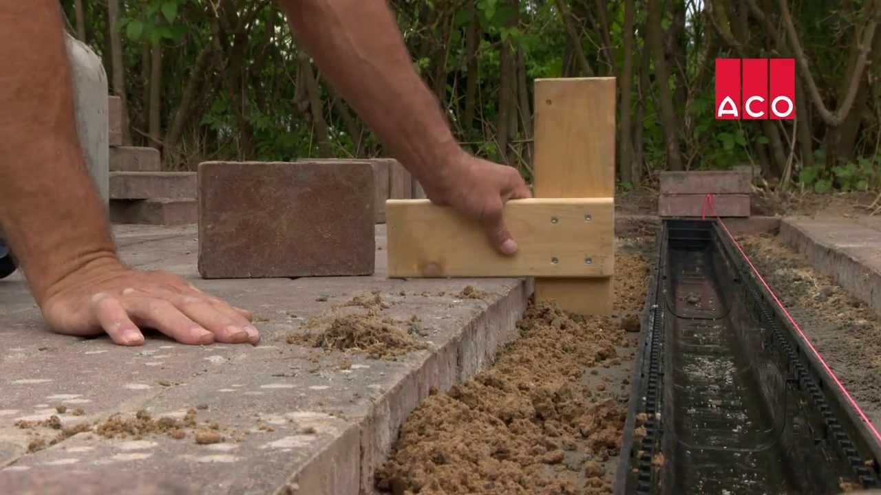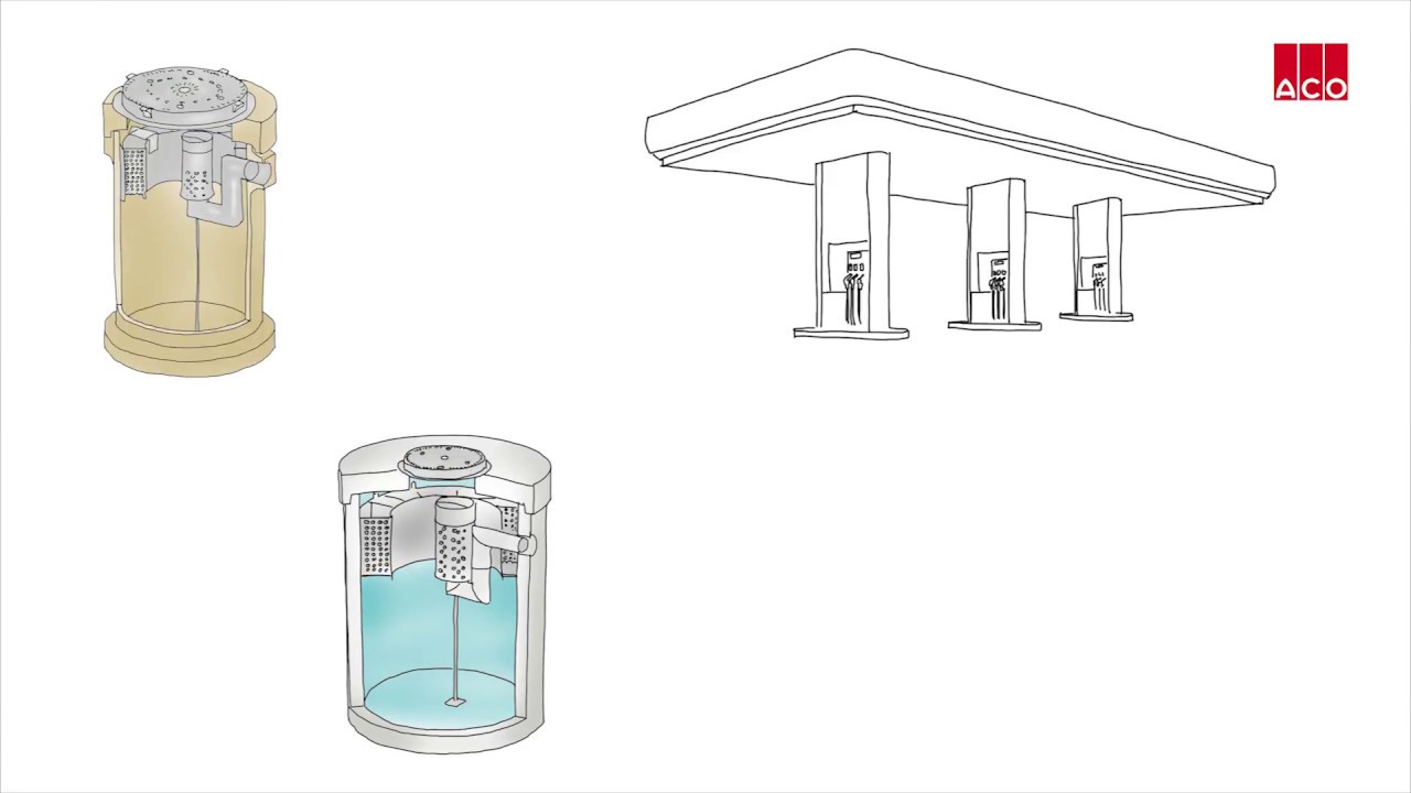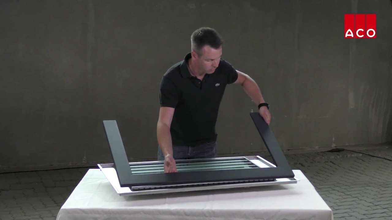 Erfahren Sie mehr zur Funktionsweise: Sehen Sie, wie das Oberflächenwasser von der ACO DRAIN® Monoblock Rinne aufgenommen und in den 3-Kammer-Tauchwandschacht fließt. Innerhalb des Systems gelangt das Wasser in den Schlammfang, wo sich die Sedimente ablagern können, dann über die Tauchwand, um anschließend gereinigt von Grobstoffen in die Rohrleitung abzuleiten.